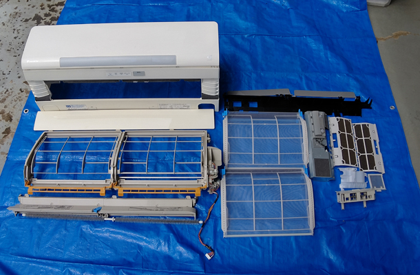 - エアコン組み立て前もエアコン内部と各パーツを確認します