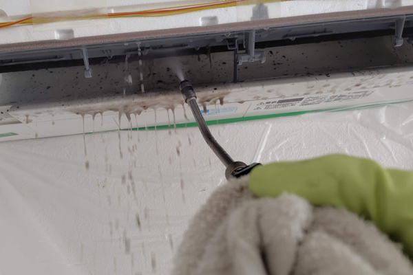 高圧洗浄でエアコンの奥までしっかり清掃、分解クリーニング