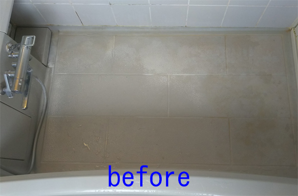 こんなに汚れた洗い場の床もクリーニング後はスッキリきれいに 元の明るさを取り戻しました
