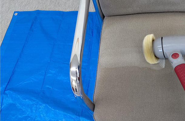 ウロコ汚れを落とす方法はいくつかありますが、私の場合は専用の研磨剤を塗り、ダイヤモンドシートを装着したサンダーで地道に磨いていきます。